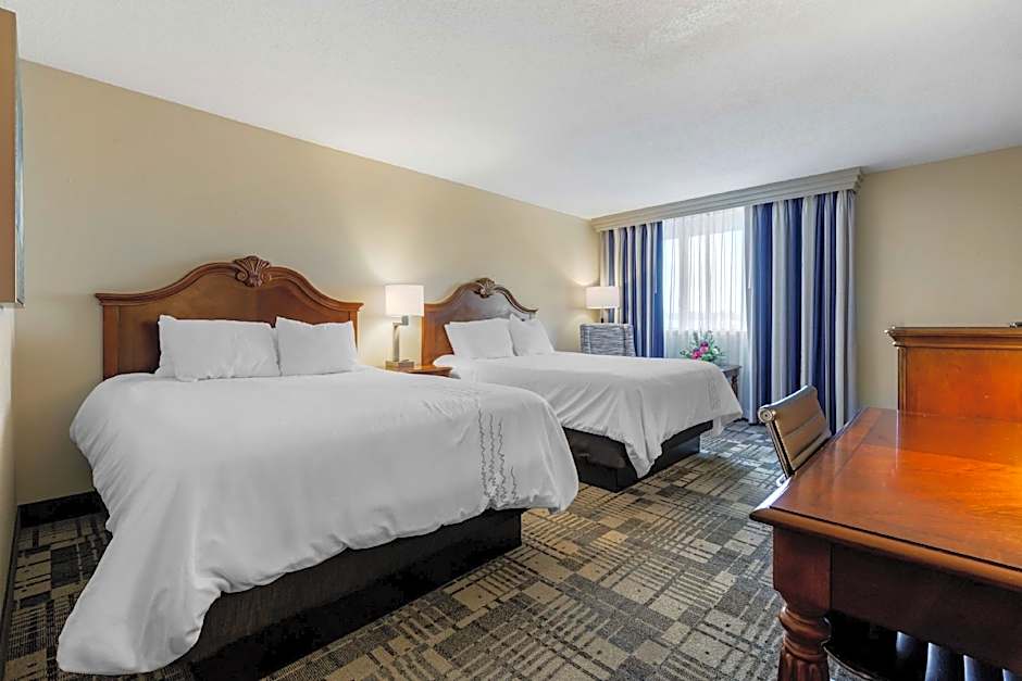 Offering a view of the indoor glass atrium pool deck, this room is located on the first floor and includes a work desk with an ergonomic chair and a coffee maker.